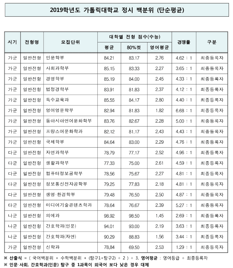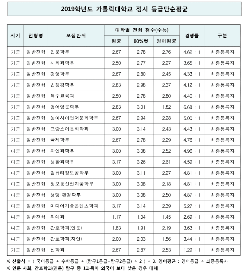 2019학년도 가톨릭대학교 정시모집 입시결과