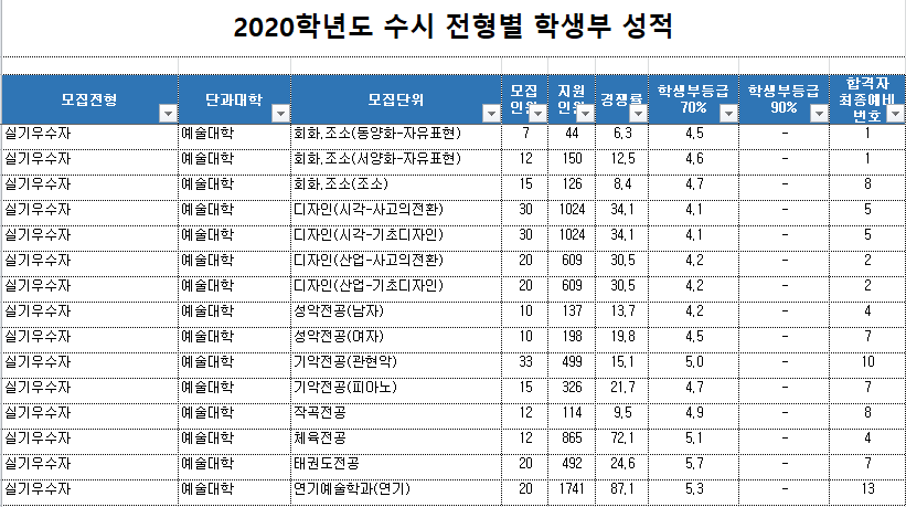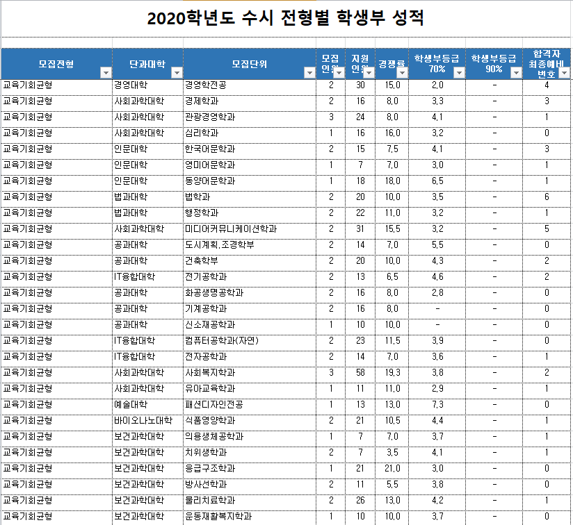2020학년도 대학 수시 입시결과 -ㄱ- 경기대학교 2020학년도 수시등급 입시결과 자료 계명대학교 2020학년도 수시등급 입시결과 자료 가천대학교 2020학년도 수시등급 입시결과 자료 국민대��