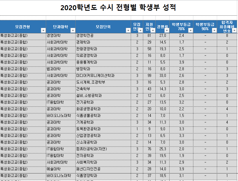 | 서울시립대학교 2020학년도 수시등급 입시결과 자료 <밤몽의 입시결과> (0) | 2020.05.03 |