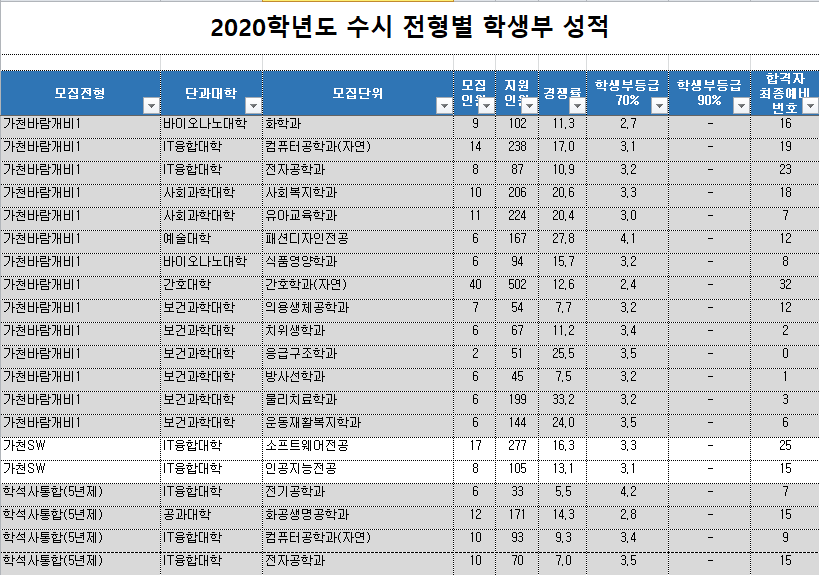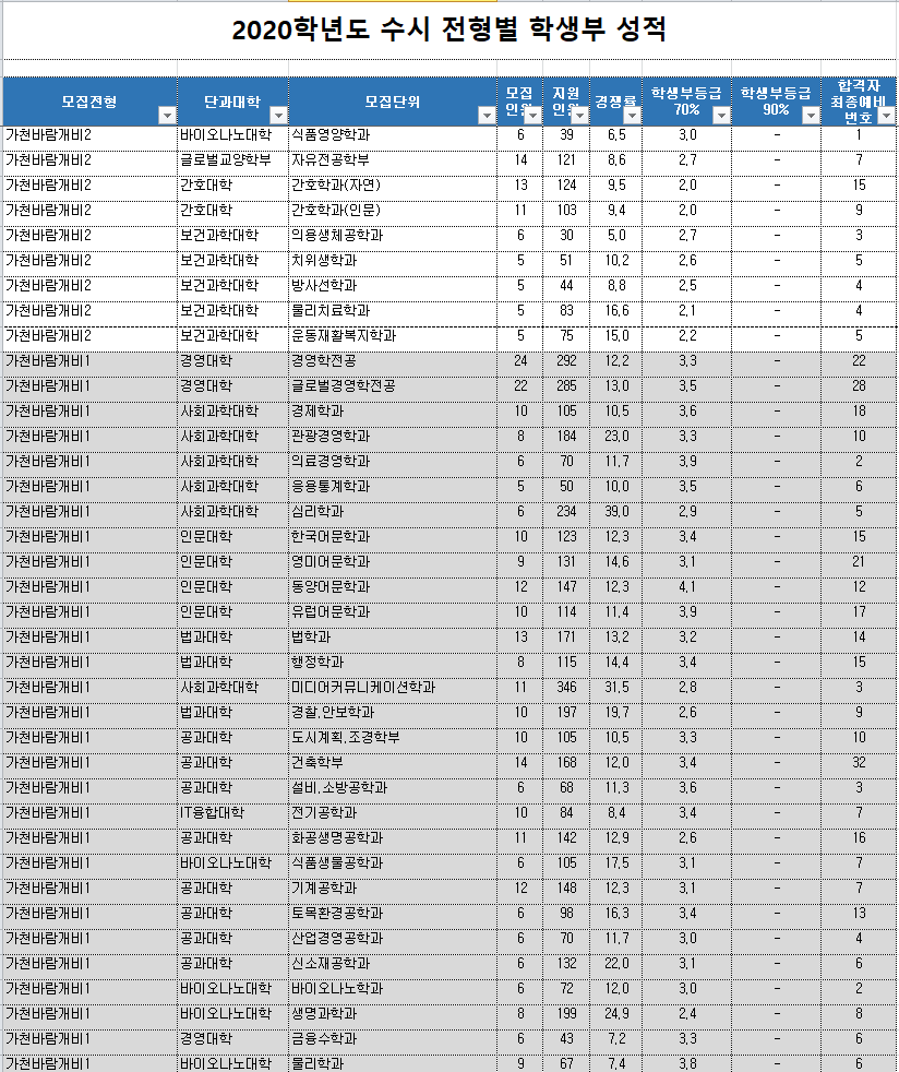 성남시에 위치한 가천대학교 글로벌 캠퍼스의 2020학년도 수시등급 입결자료에 대한 포스팅입니다.