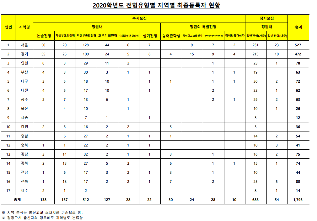 학생부종합,고른기회,사회통합전형의 입시결과 자료입니다.