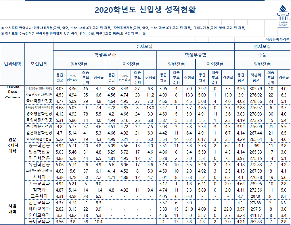 이상으로 계명대학교 수시등급 입시결과 자료 2020학년도에 대한 포스팅을 마치겠습니다.