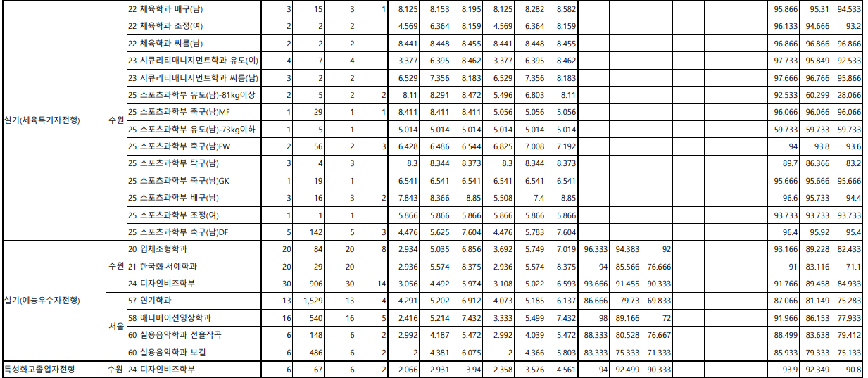 <2020학년도 경기대학교 수시모집 성적현황>