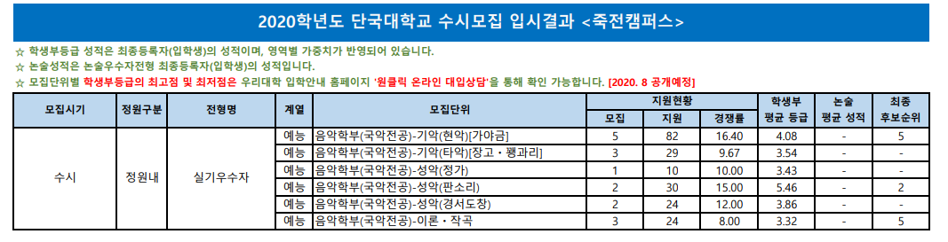 경기도 용인시 수지구 죽전에 위치한 단국대학교 죽전캠퍼스 2020학년도 수시등급 입시결과 자료에 대한 포스팅입니다.
