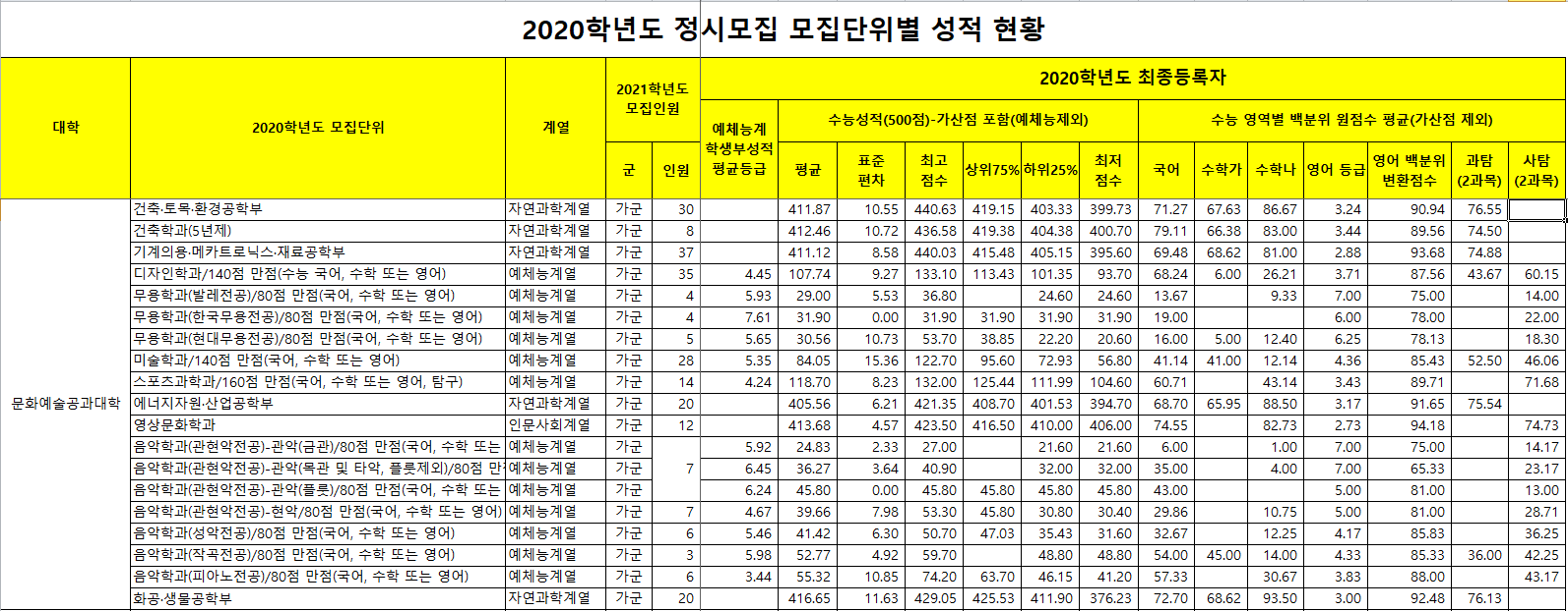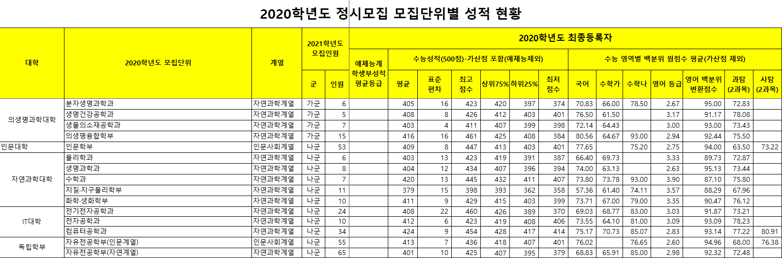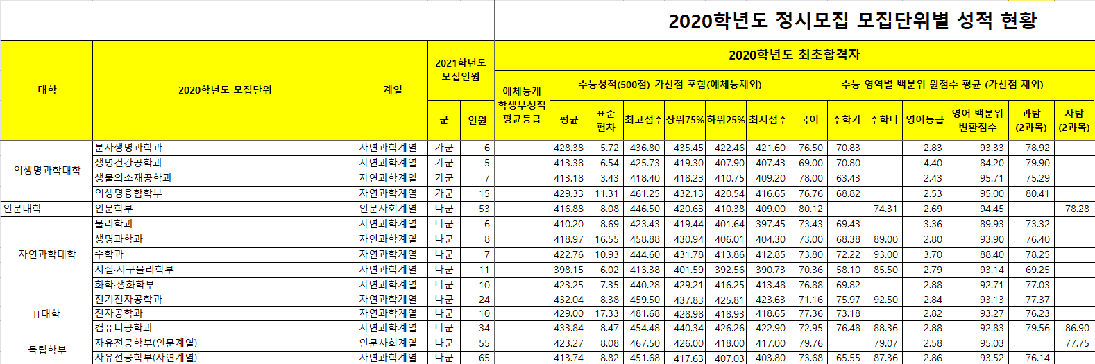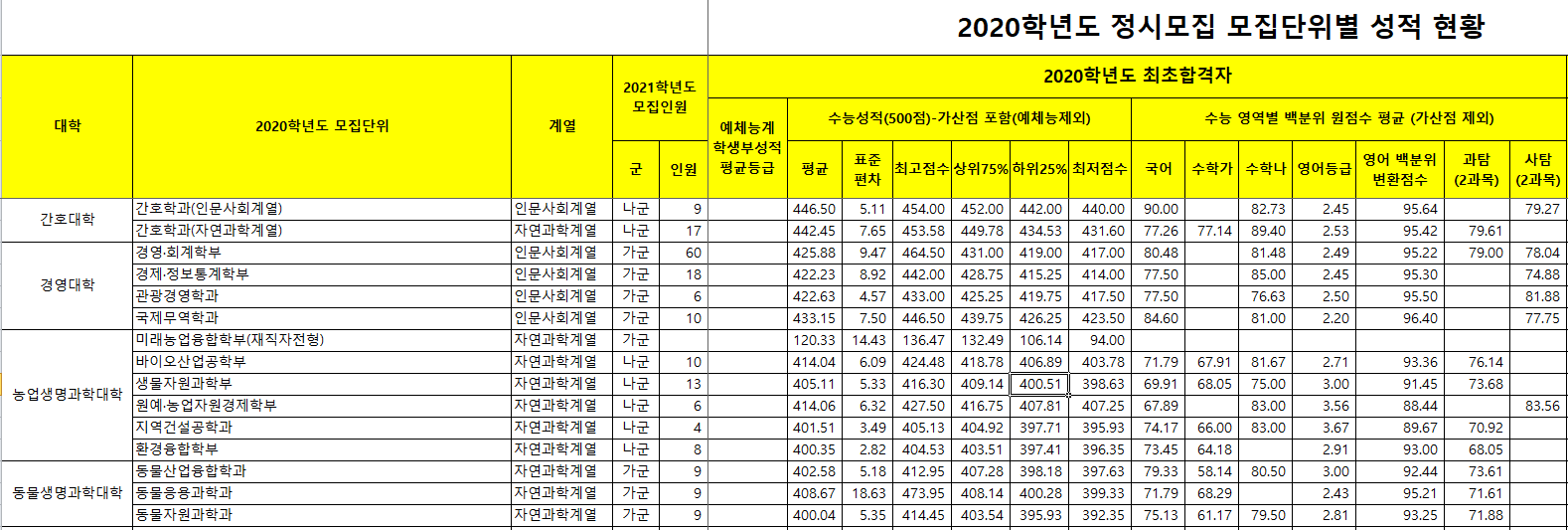 이상으로 강원대학교 2020학년도 정시등급 입시결과 자료 포스팅을 마치겠습니다.