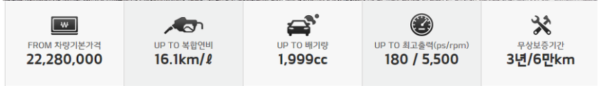 가격대는 LPI차량부터 디젤까지 최저 1800만~3000만원대 초반으로 옵션유무와 엔진 배기량차에 따른 가격차이를 확인 하실수 있습니다.