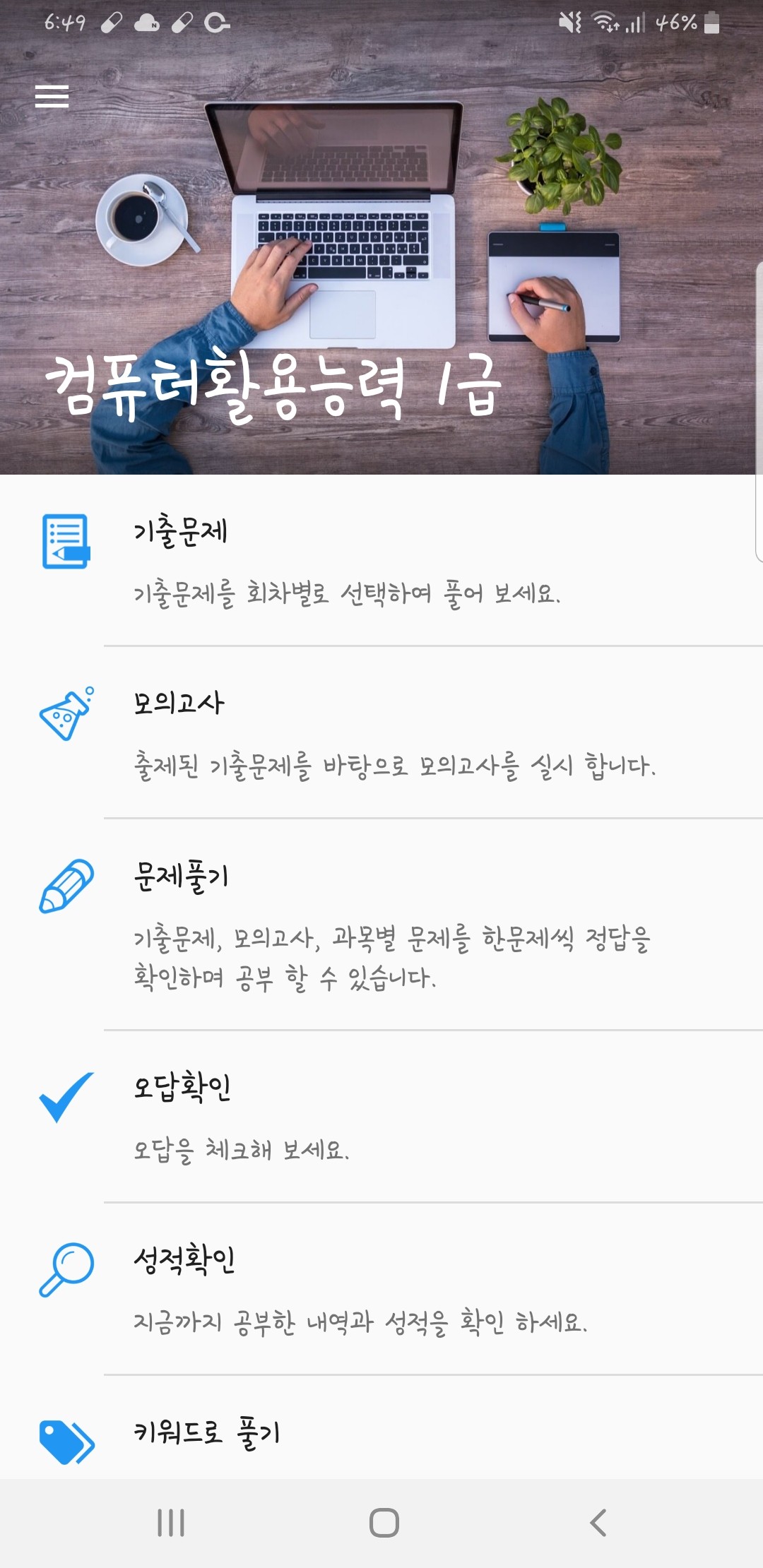 5. 컴활 1급 어플을 통해 모의고사를 계속 치면서 오답 확인을 꾸준히 한다.