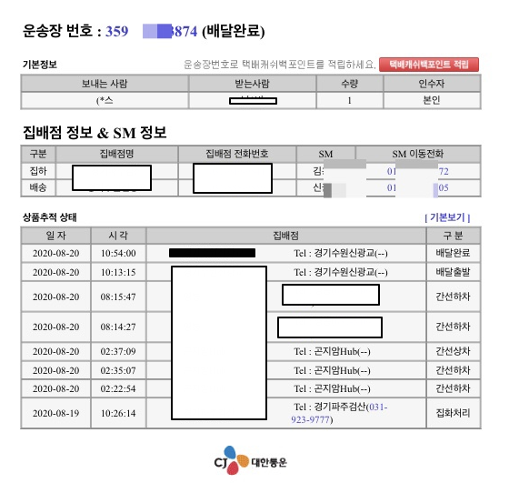 1. CJ 대한통운 홈페이지 직접 조회