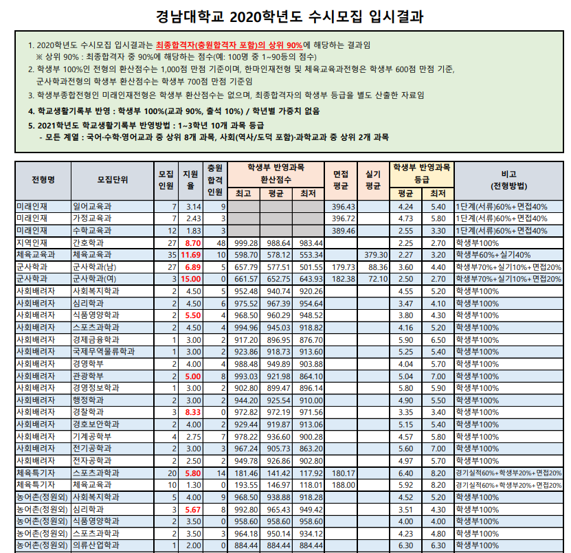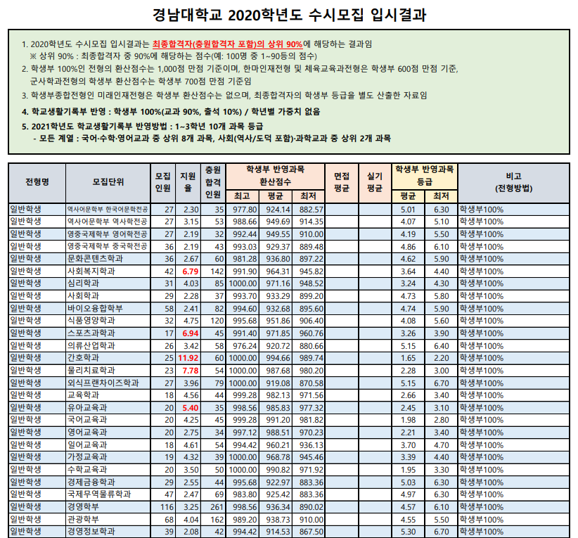 이상으로 경남대학교 2020학년도 수시등급 입시결과 자료에 대한 포스팅을 마치겠습니다.