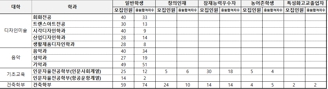 수시모집 일반학생, 창의인재, 지역인재특별전형 입학자 성적