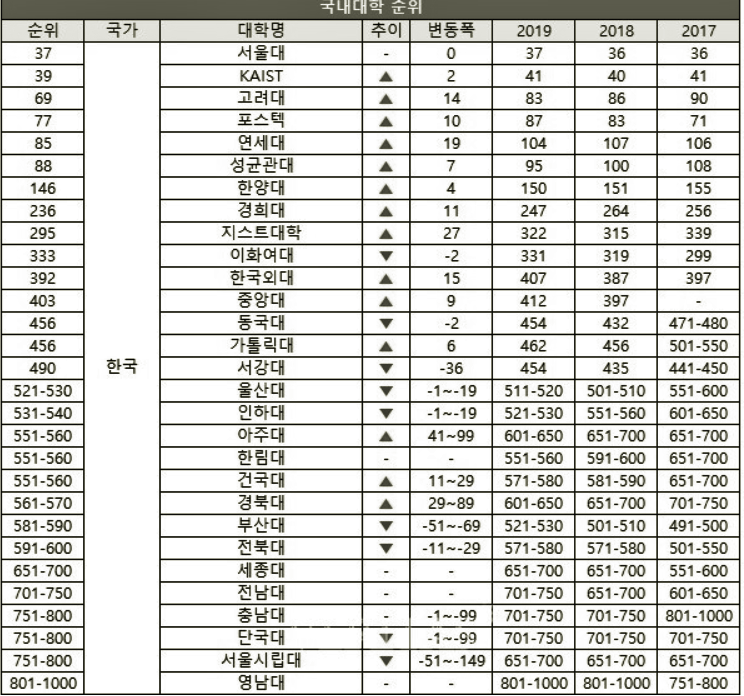 | 세계 대학랭킹 중 국내 대학 순위 정리 (THE,QS) (2020) (0) | 2020.11.16 |