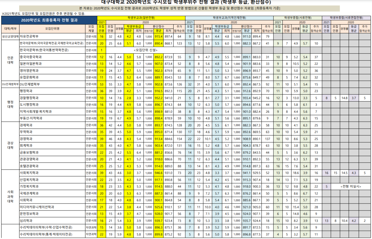 이상으로 대구대학교 2020학년도 수시등급 입시결과에 대한 포스팅을 마치겠습니다.