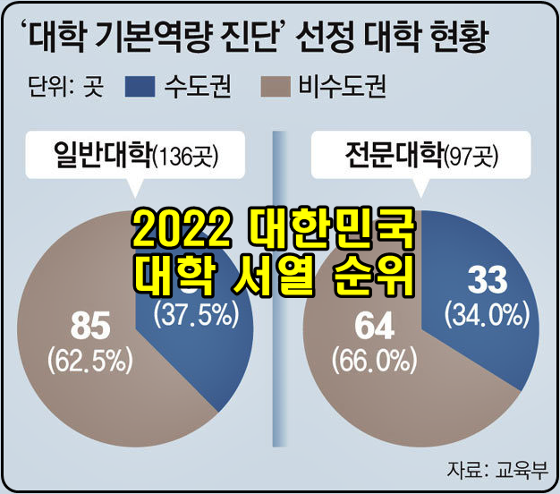 2022 대한민국 대학 순위 서열 정리