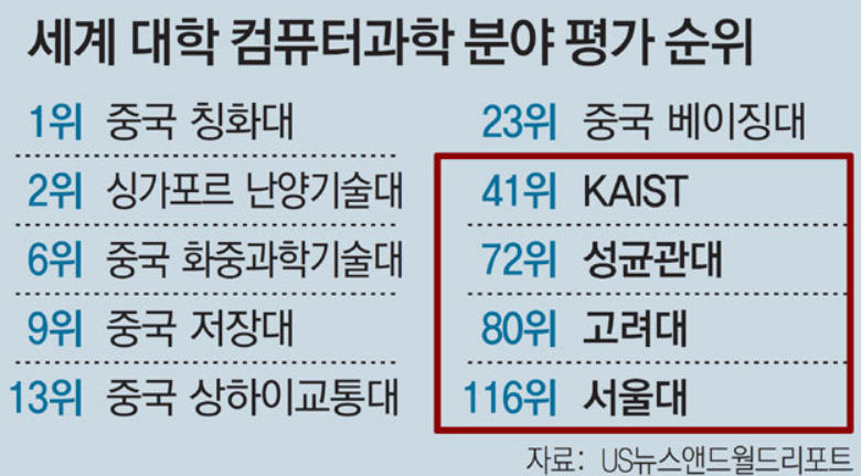 그럼 바로 국내 컴퓨터공학과 컴공 관련 대학 순위를 알아보도록 하겠습니다.