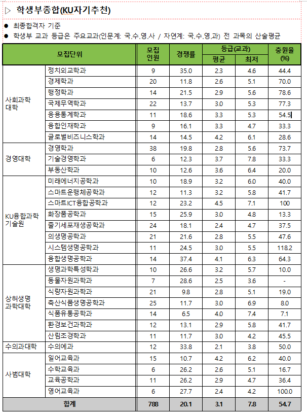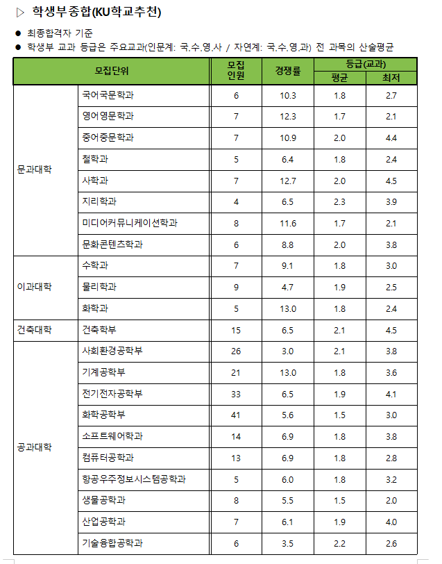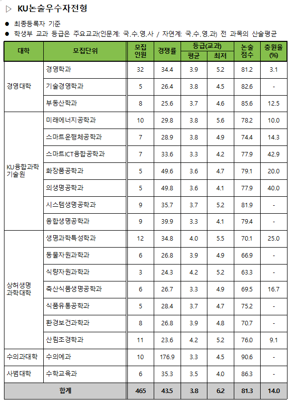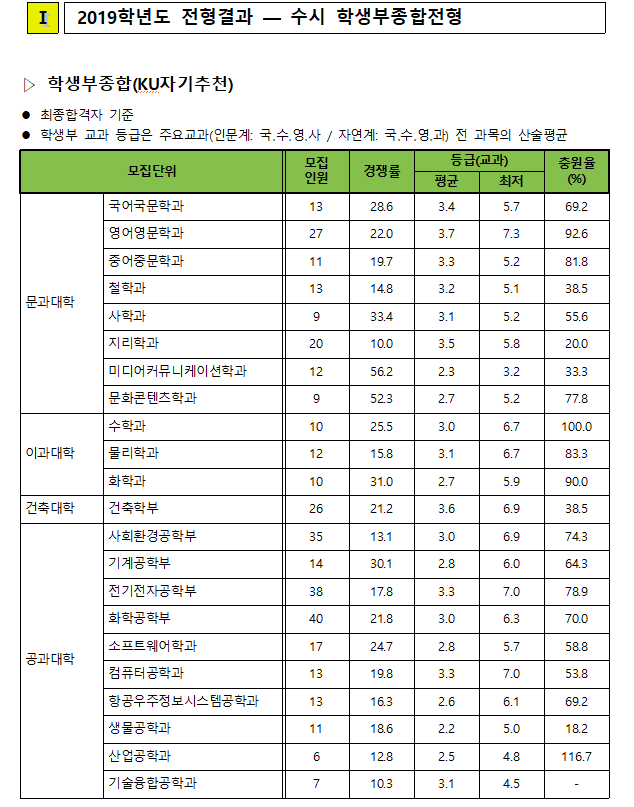이상으로 건국대학교 KU학교추천,자기추천,논술우수자 전형의 2019학년도 모집인원 및 경쟁률과 각 과의 평균,최저 등의 입시결과 정보 포스팅을 마치겠습니다.